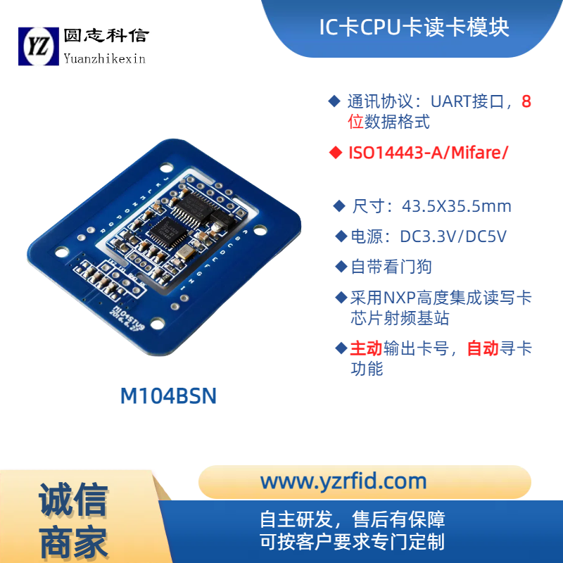 ROHS2.0 M104x系列13.56M Mifare内置天线读写模块——安防商盟网安防产品
