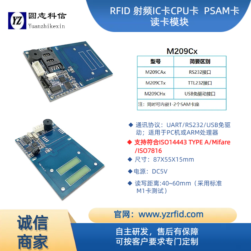 ROHS2.0 M209DPC RS232 非接触式USB免驱动读写模块——安防商盟网安防产品