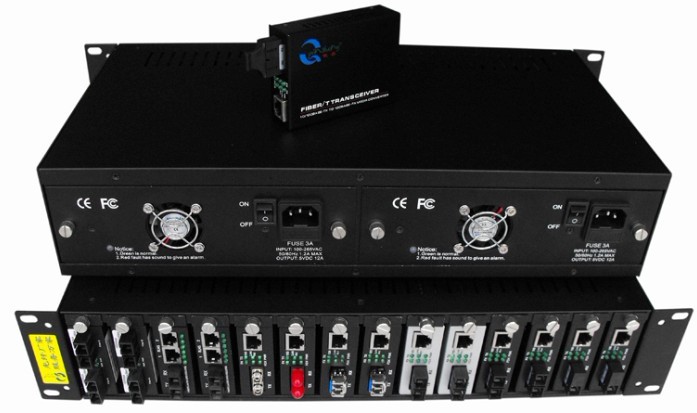 2U铝合金双电源插卡式光端机机箱 ,1、2路插卡式光端机电源机架