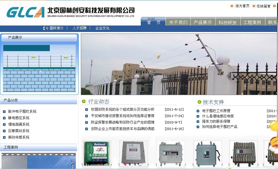 北京国林创安科技发展有限公司创立于北京市海淀区北新科技园,是一家集研发、生产、销售、服务于一体的高新技术企业。自创办以来,北京国林创安科技发展有限公司一直追求专业、诚信、服务的企业理念。公司从用户的实际需求出发,结合自身的发展,从工程设计、设备安装、配制到施工、技术培训以及售后服务,均由专业工程师倾力完成。在公共安全应用中,小区、军队、公安、学校、煤矿、电力、电信、油田、政府、、监狱、银行、交通、公共场所等行业都获得了多个典型周界安防工程,取得了骄人的业绩。