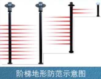 红外线幕墙阶梯地形防范示.
