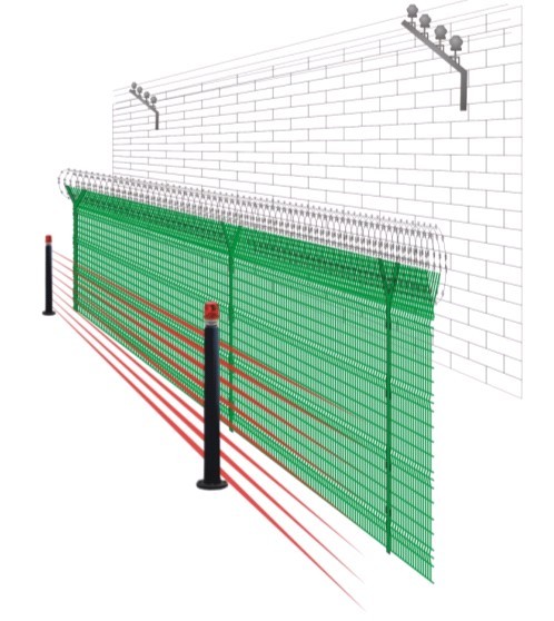 红外线幕墙多方向防范示意.
